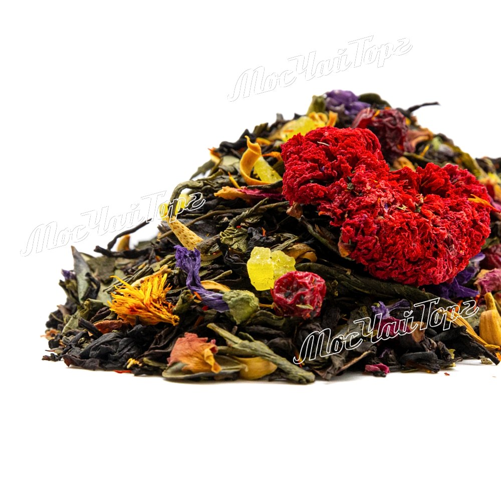Этот купаж создан для тех, кто ищет не просто чай, а настроение, вдохновение и немного волшебства в каждой чашке. В основе - насыщенный индийский чёрный чай и мягкий зелёный сенча, дополненные ярким букетом лепестков роз, сафлора и мальвы. Цветки граната и Pin-Up дерева придают изысканную фруктовую нотку, а кусочки цукатов и красная смородина добавляют сладость и сочность. Лист брусники завершает композицию лёгкой лесной прохладой.